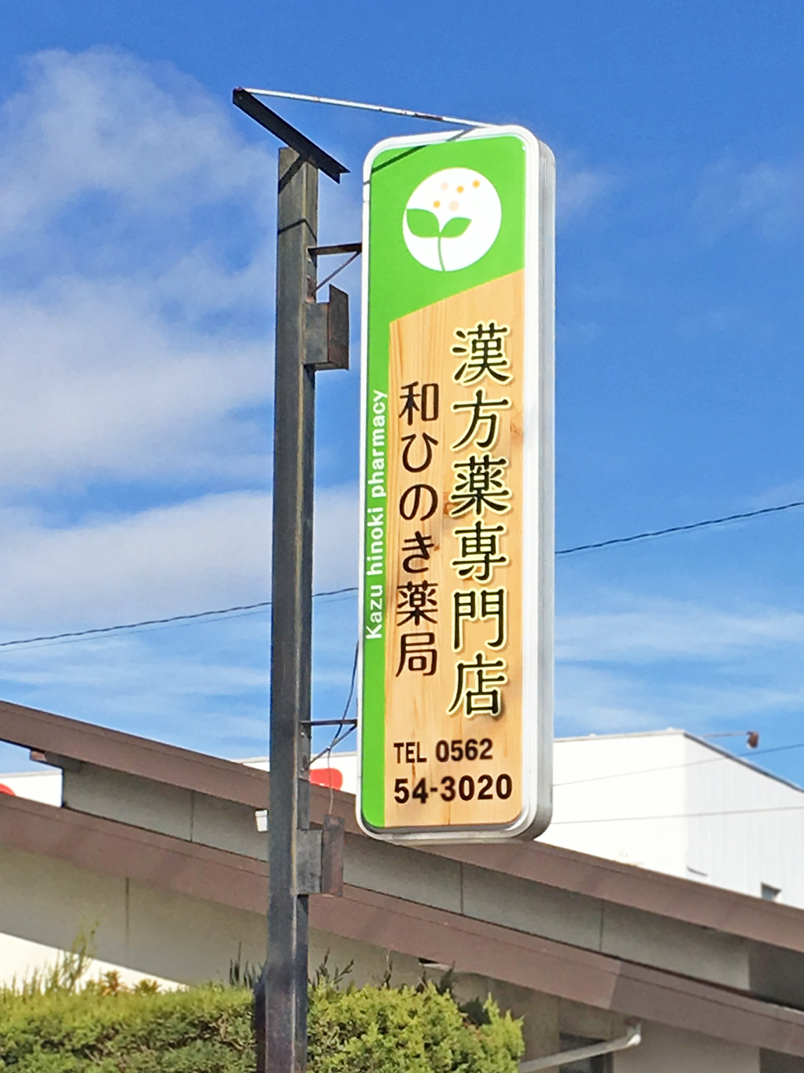 漢方専門店であることが一目でわかるよう、薬局名よりも業態を明確に示すデザインにしました。