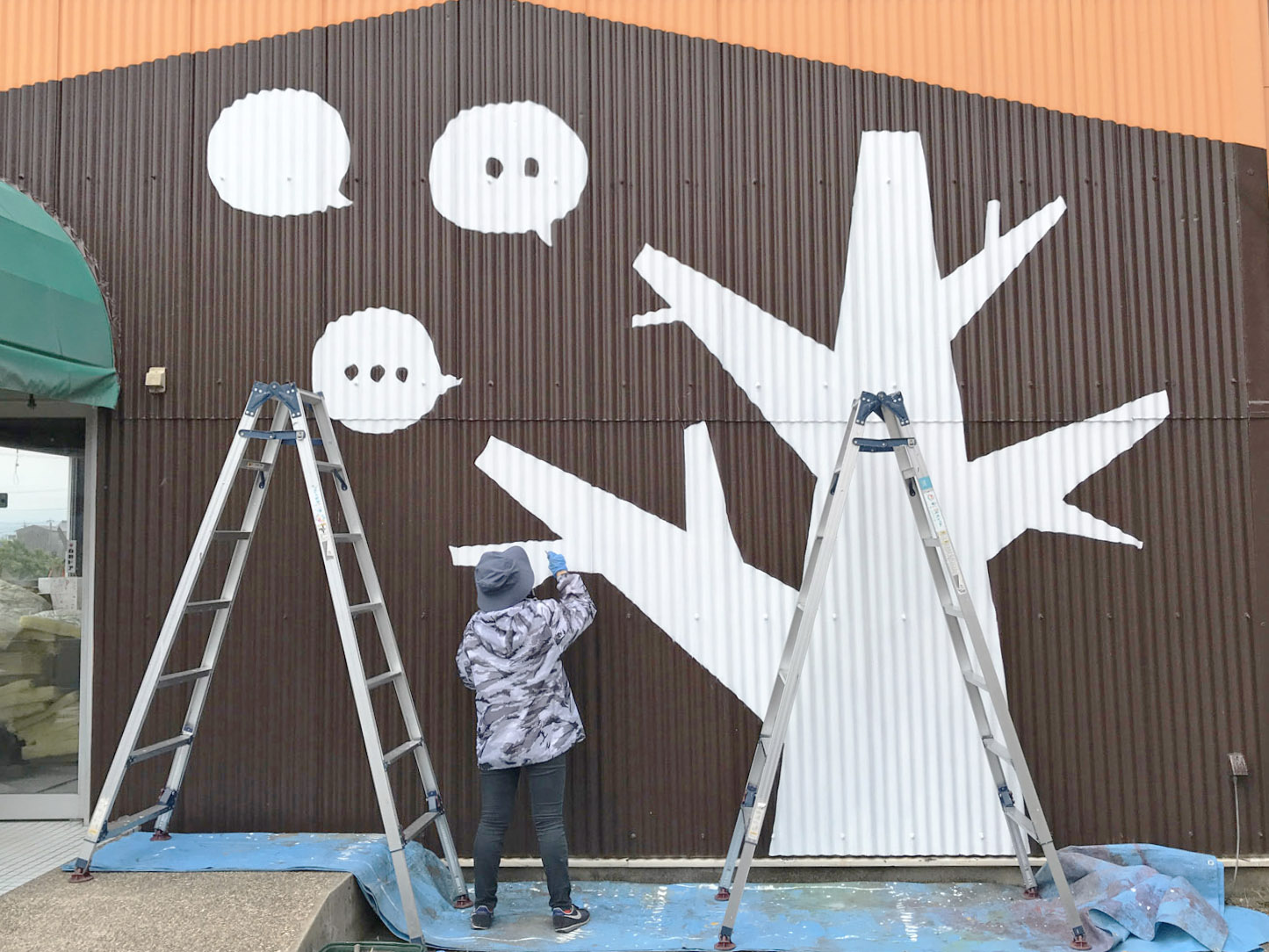巣立った雛がまた戻ってきて、みんなでワイワイ過ごせるイメージを壁面に描きました。