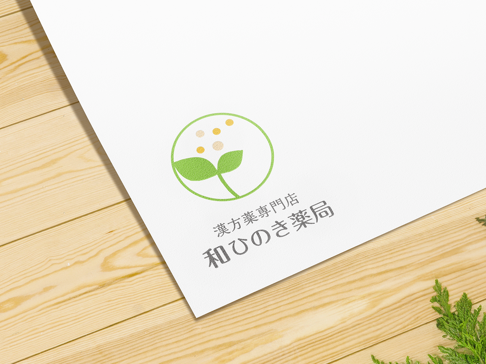 ロゴデザインは、漢方の粉や薬草の自然な恵みをイメージし、葉っぱをモチーフに表現しました。