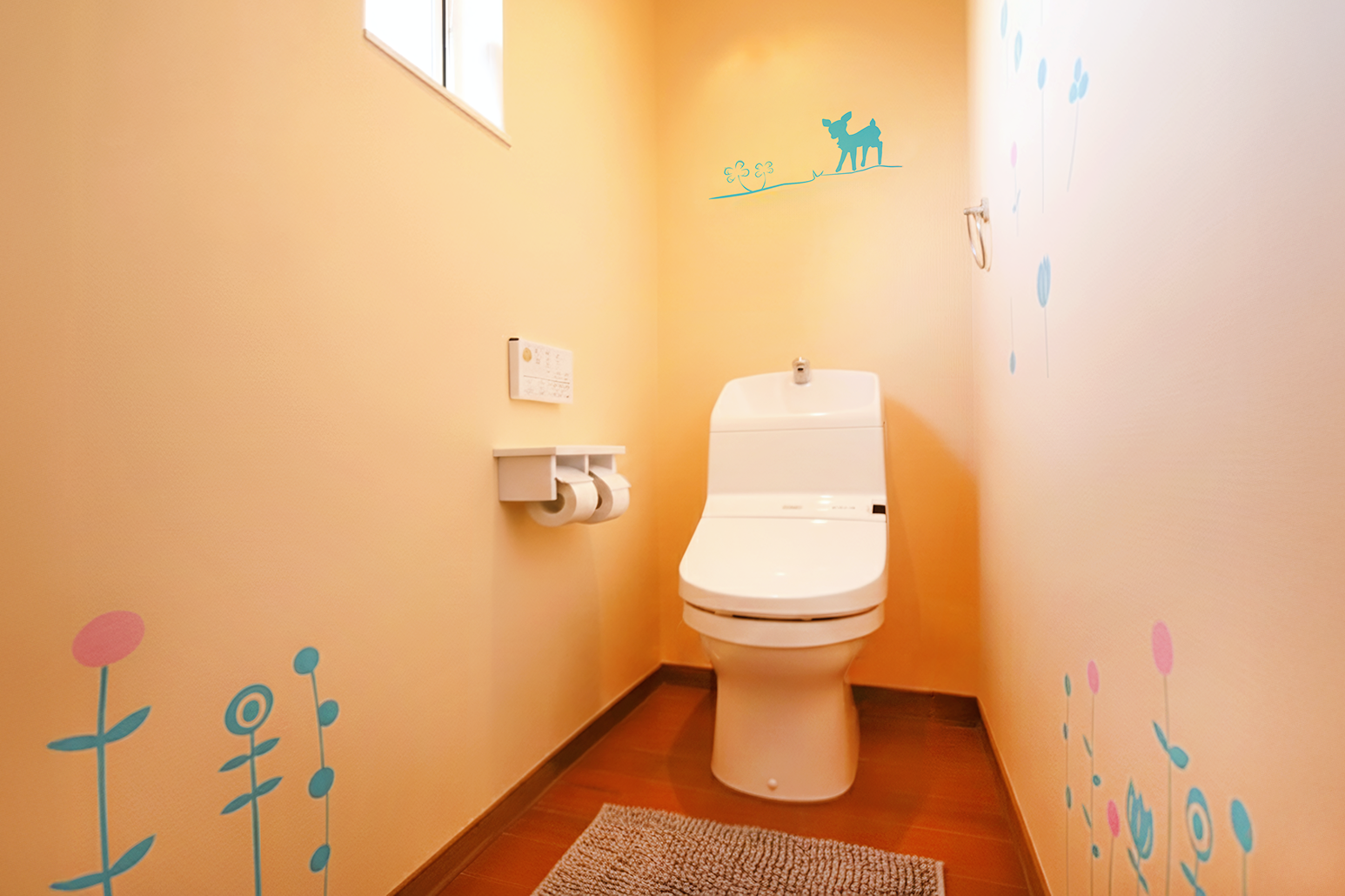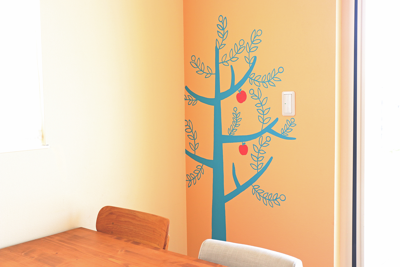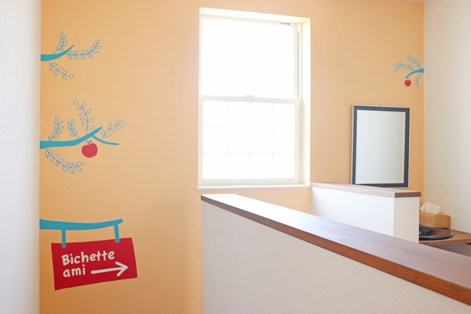 - 壁色は無機質な白ではなく、パンをイメージさせるバター色・バター色+オレンジ色で暖かい雰囲気に。2種類の色で壁塗装しました。