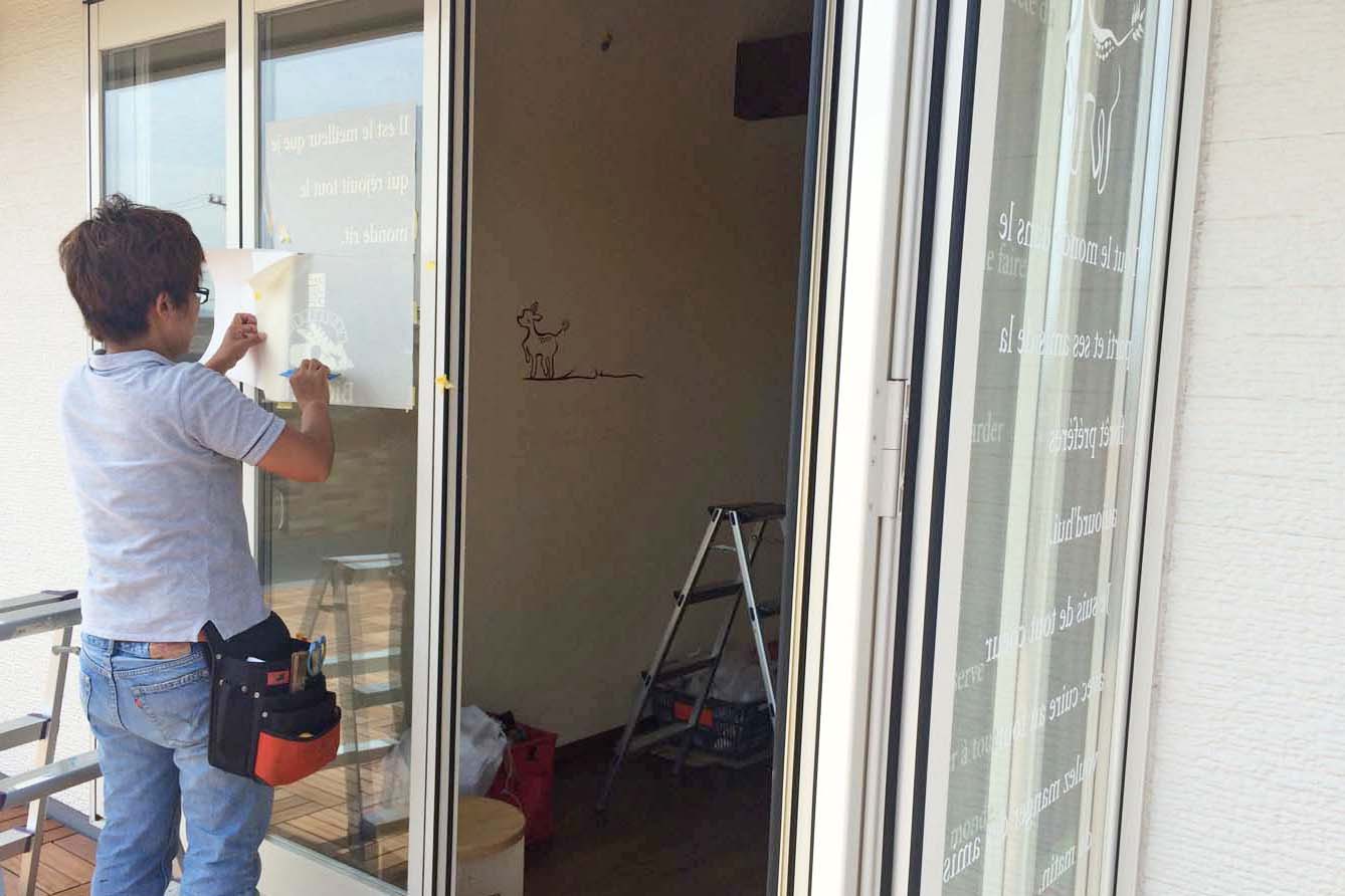 内装の雰囲気に合うようにピンクの黒板も制作しました。