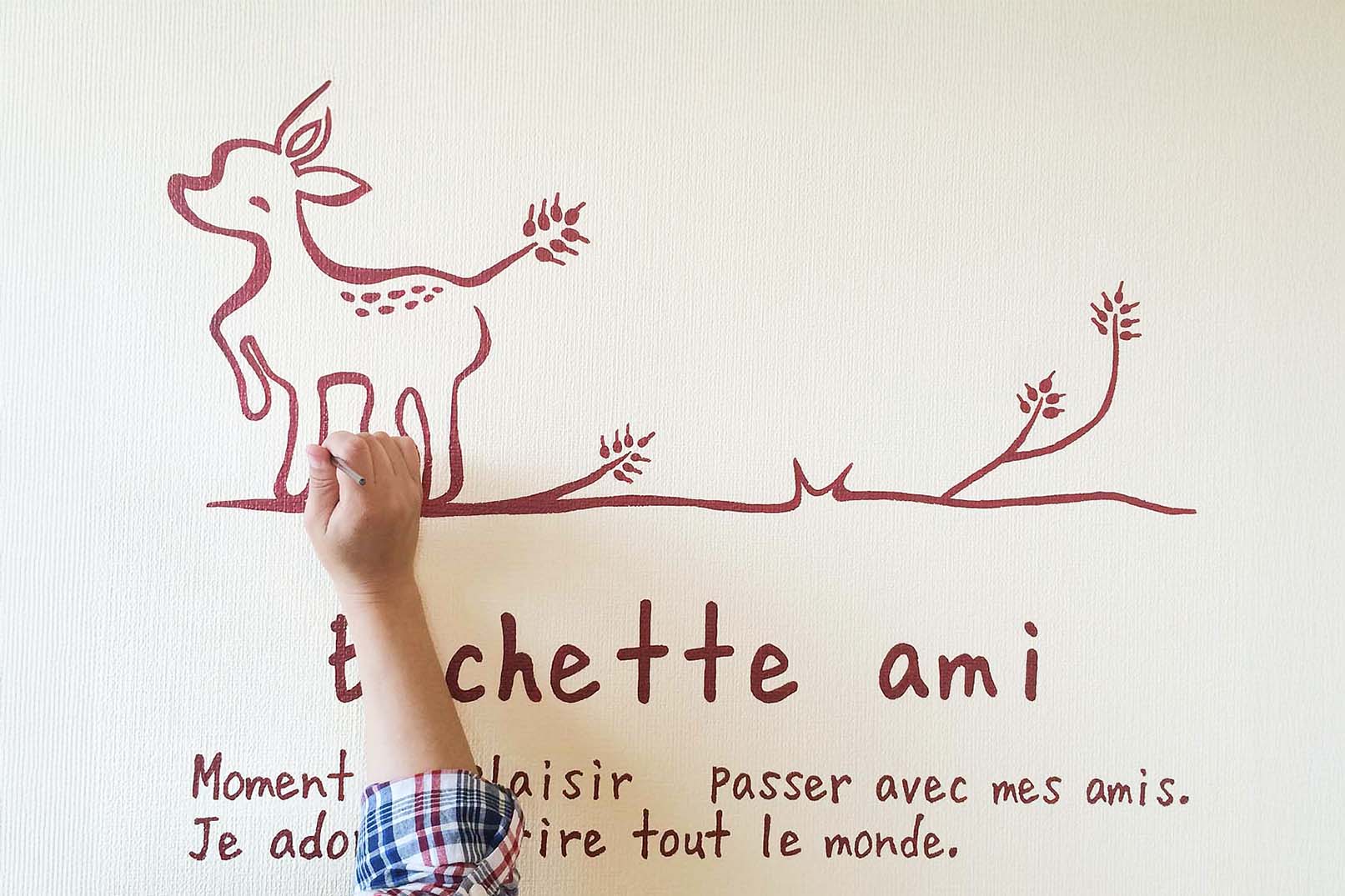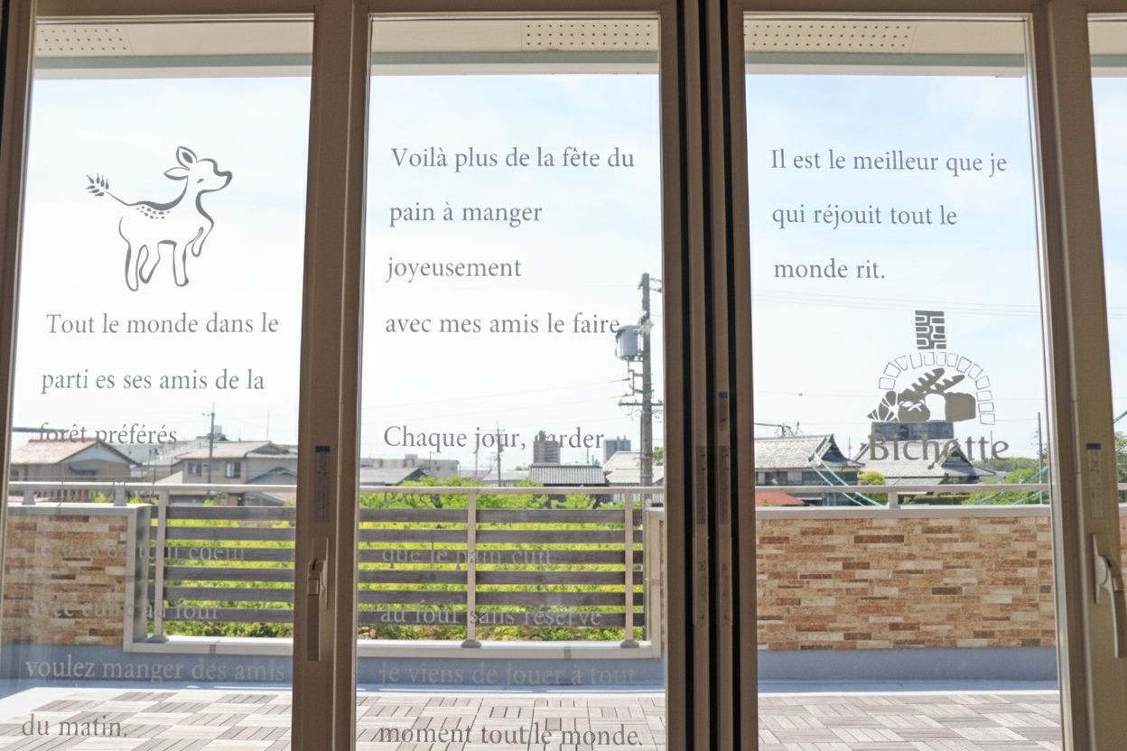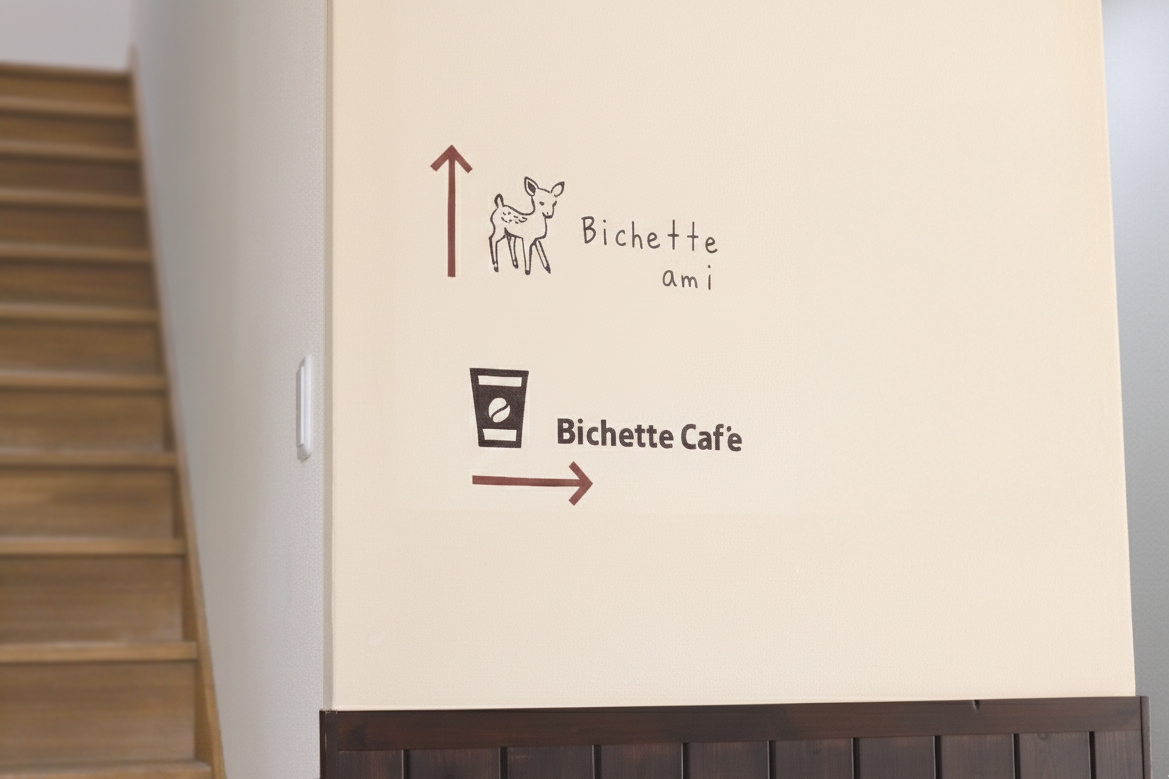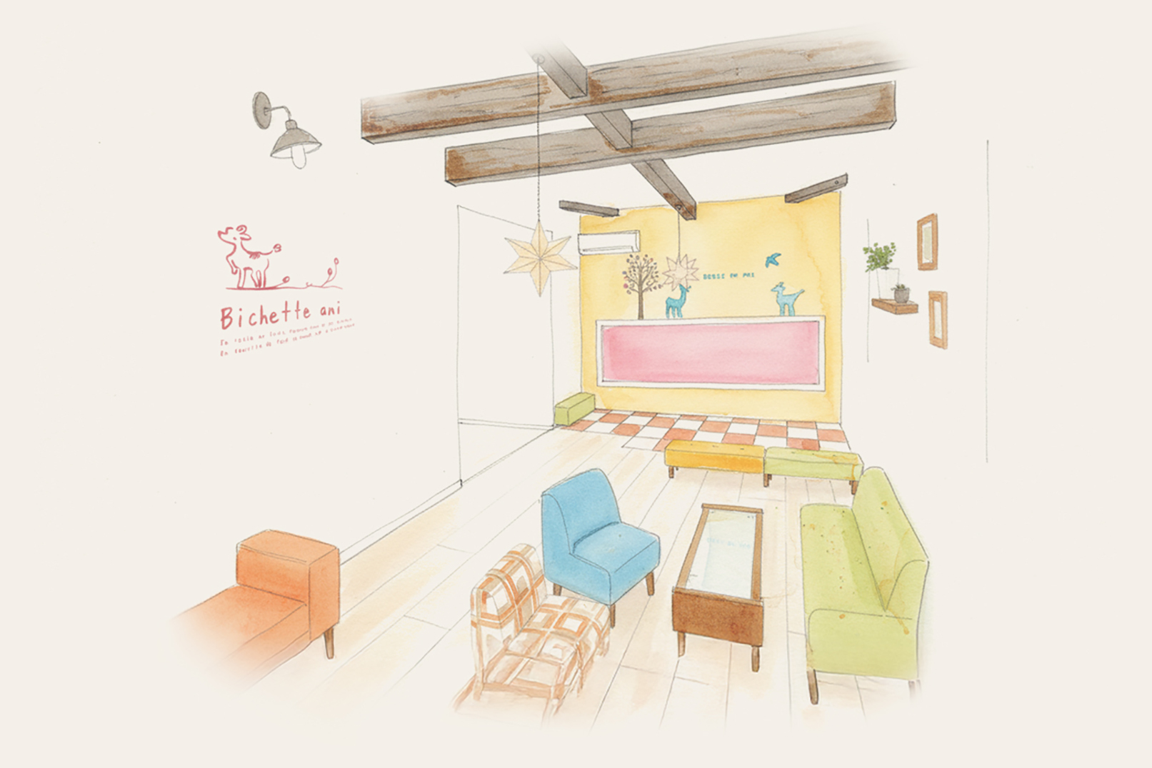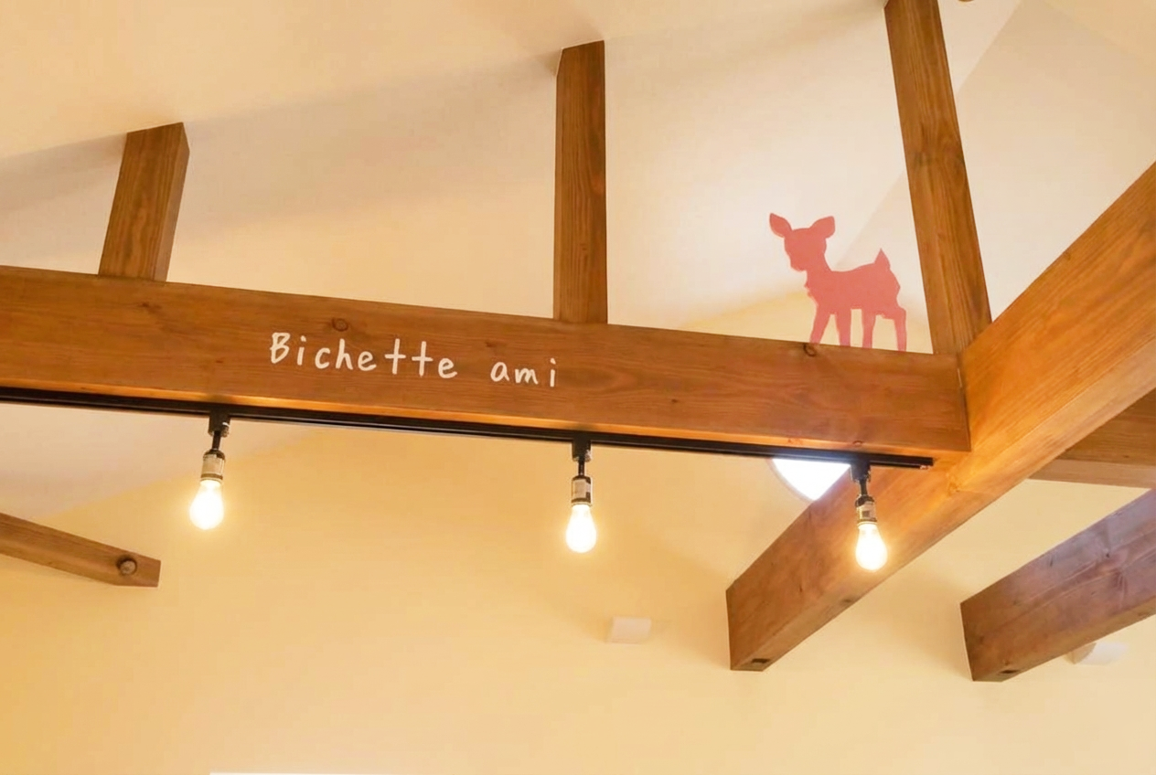 お店のキャラクターであるビシェット(こじか)達が遊ぶ空間をイメージし、「bichette ami (愛しい友達)」と名付けました。
