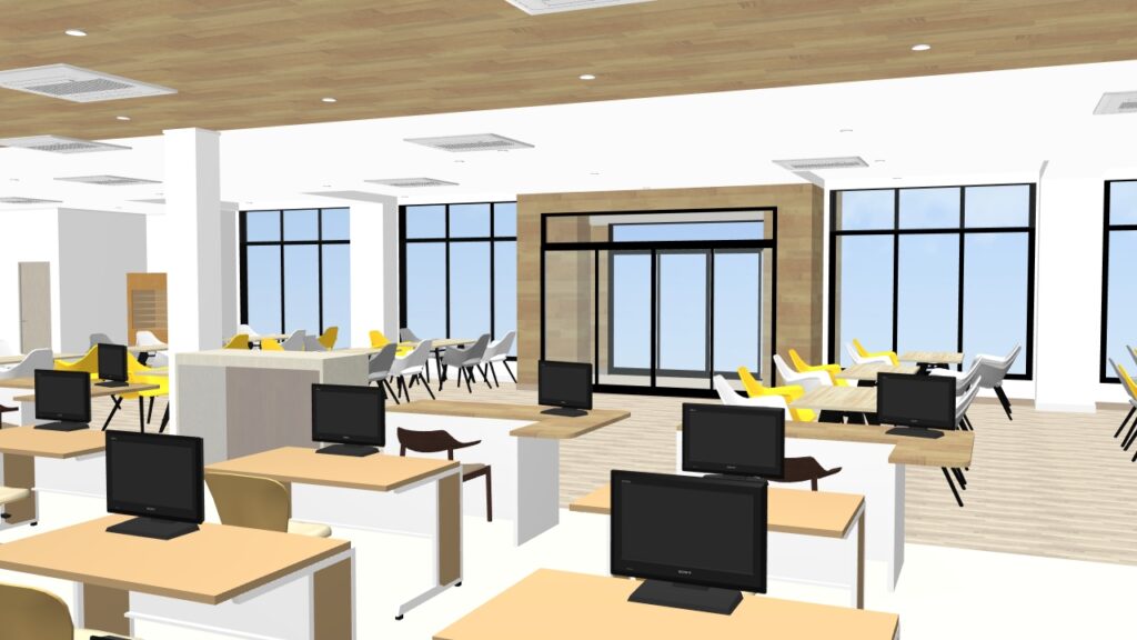 見回しやすいだけではなく、スタッフの方の休憩や動線が行き来しやすいように配慮しました。