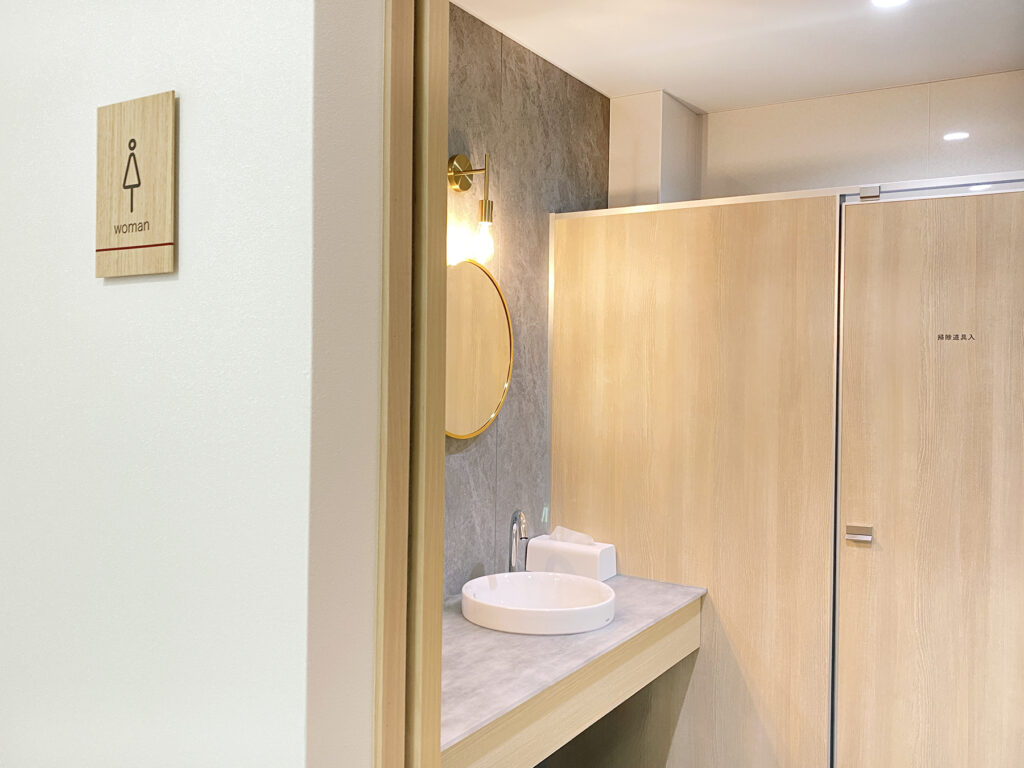 トイレも一新! また女性用トイレは手洗いスペースを広げて使いやすくしました。