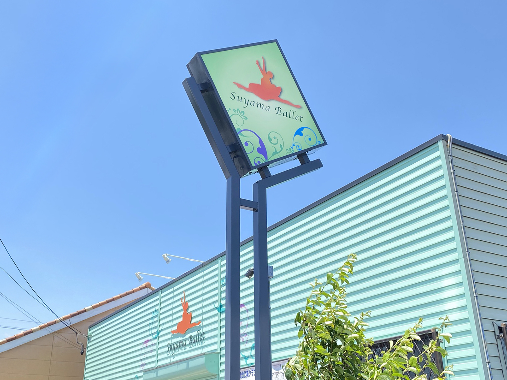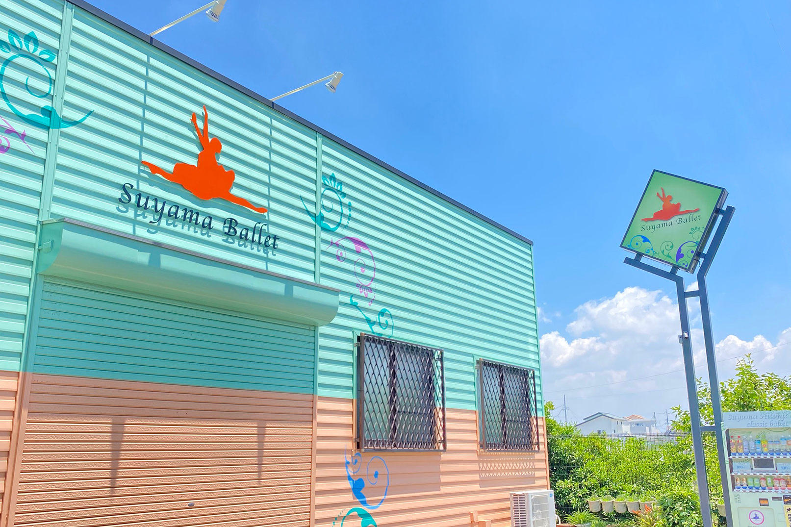 ツートンカラーが印象に残るバレエ教室の外観デザイン