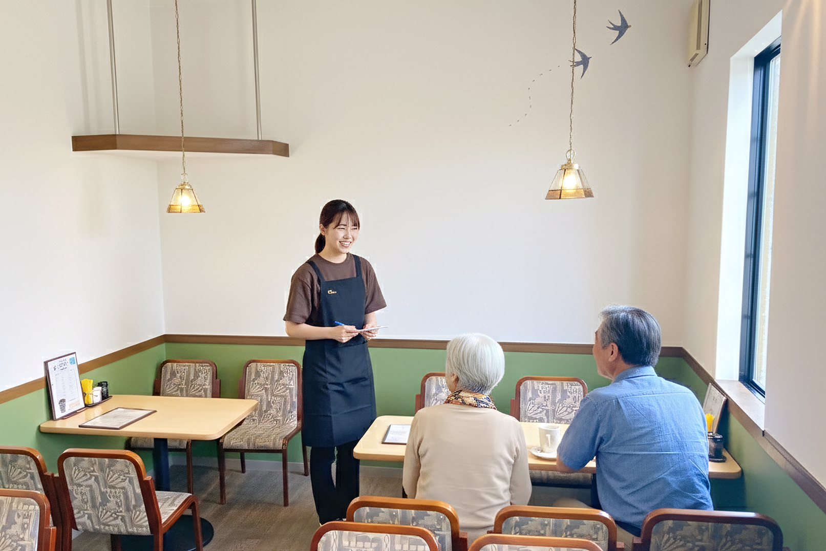 色味は和にも洋にも馴染む落ち着いたトーンを選び、喫茶店としての雰囲気を損なうことなく、やさしく空間に溶け込むデザインとしています。